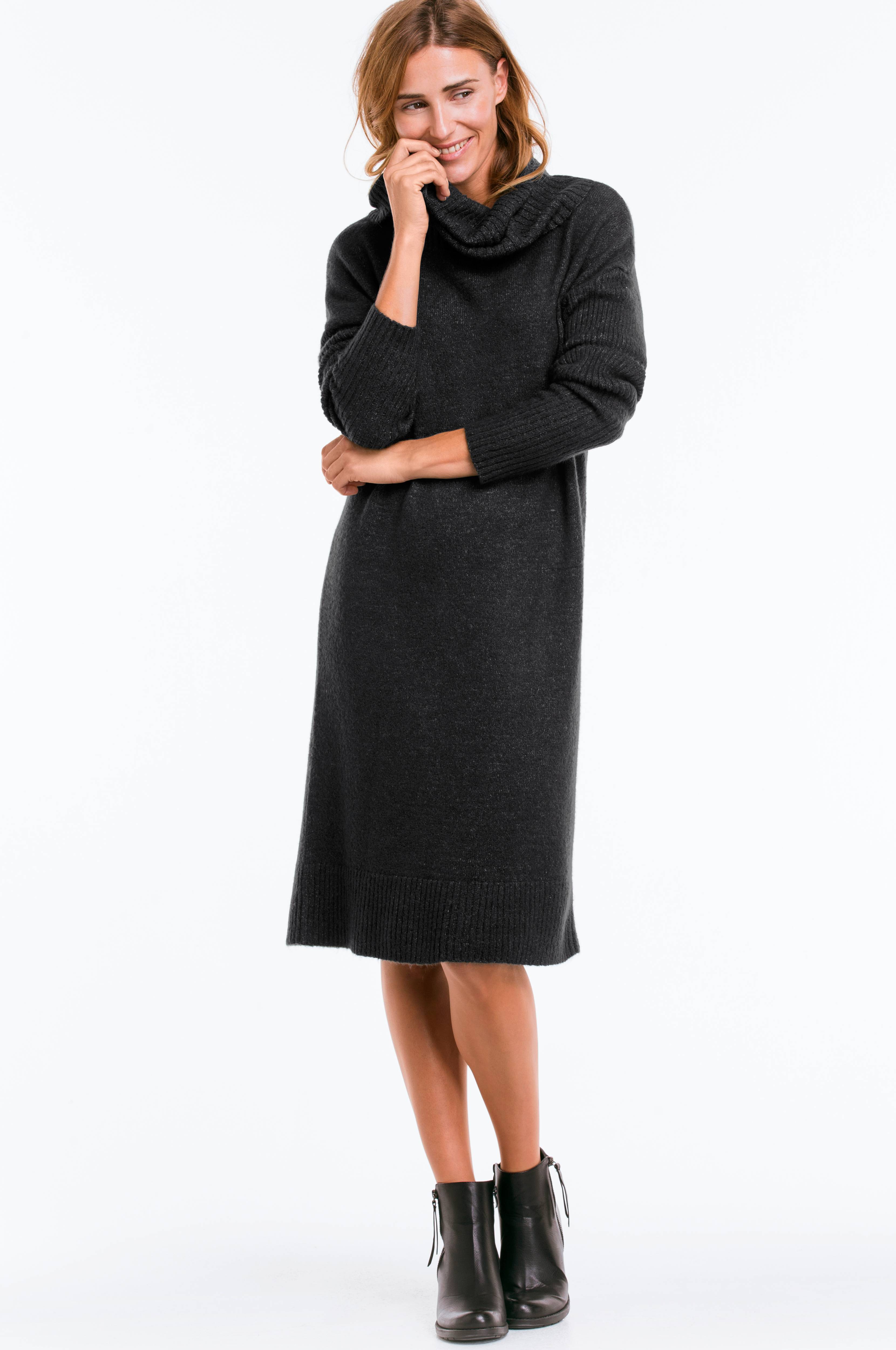 Ellos Collection Stickad klänning med stor polo - Grå - Korta - korta festklänningar 2017